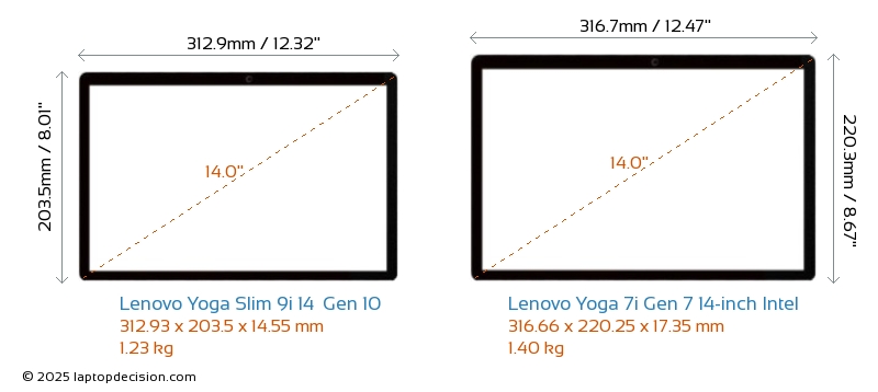 ThunderboltBoth Yoga Slim 9i 14 Gen 10 and Yoga 7i Gen 7 14-inch Intel are equipped with Thunderbolt 4 ports.