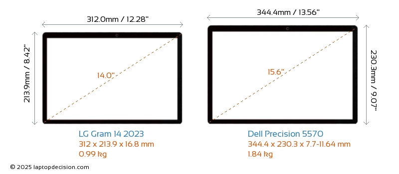 HDMI Gram 14 2023 features an HDMI port (1x HDMI 2.0) for connecting to external monitors. Precision 5570 does not have an HDMI port.