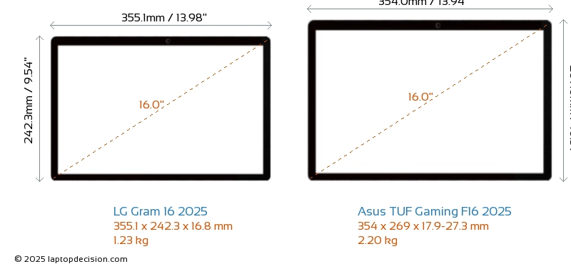 HDMIBoth Gram 16 2025 and TUF Gaming F16 2025 feature an HDMI port (1x HDMI 2.1) for connecting to external monitors.
