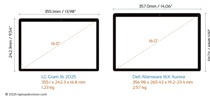 Audio JackBoth Gram 16 2025 and Alienware 16X Aurora are equipped with a 3.5mm Audio Jack, providing seamless connection to headphones and speakers.