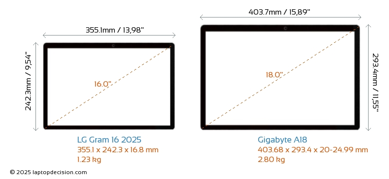 HDMIBoth Gram 16 2025 and A18 feature an HDMI port (1x HDMI 2.1) for connecting to external monitors.