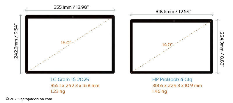 HDMIBoth Gram 16 2025 and ProBook 4 G1q feature an HDMI port (1x HDMI 2.1) for connecting to external monitors.