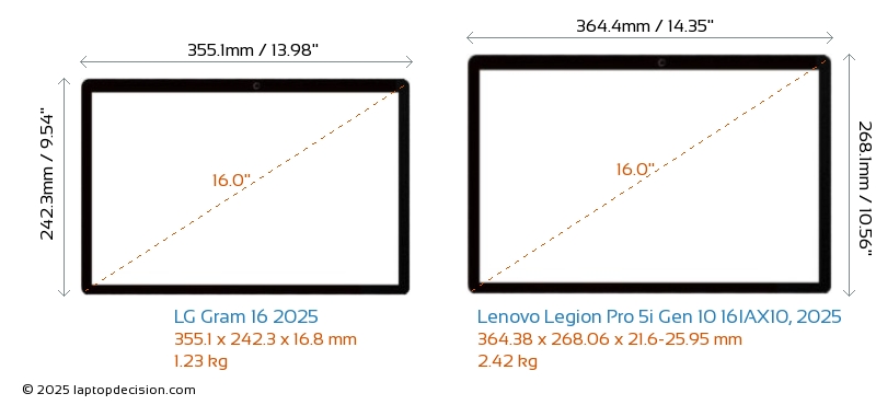 SD Card Reader Gram 16 2025 is equipped with an SD Card Reader for easy access to memory cards. Legion Pro 5i Gen 10 16IAX10, 2025 does not have an SD Card Reader.