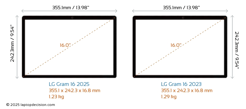 Wifi Gram 16 2025 features a more advanced Wi-Fi standard v7, providing faster and more reliable wireless connections compared to Gram 16 2023 (v6E).