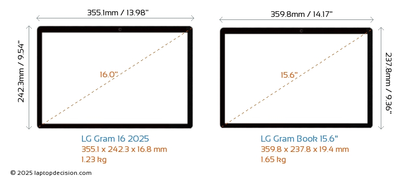 HDMIBoth Gram 16 2025 and Gram Book 15.6" feature an HDMI port. Gram 16 2025 offers 1x HDMI 2.1, while Gram Book 15.6" offers 1x HDMI 1.4.