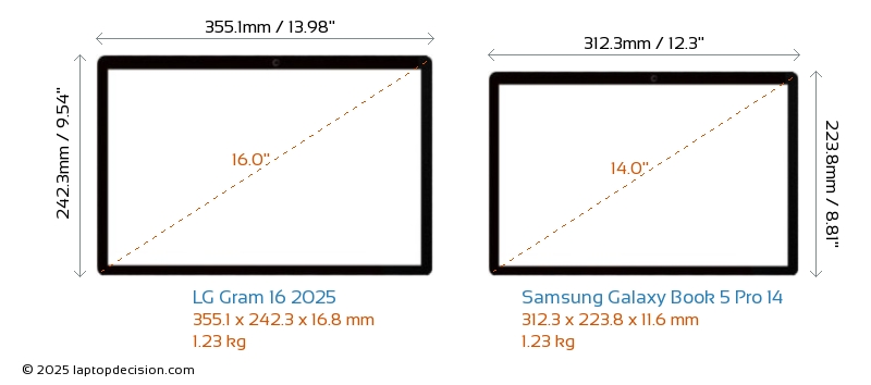 HDMIBoth Gram 16 2025 and Galaxy Book 5 Pro 14 feature an HDMI port (1x HDMI 2.1) for connecting to external monitors.