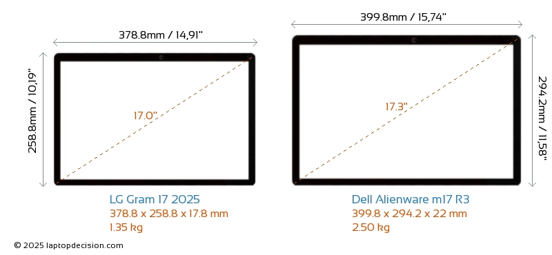 HDMIBoth Gram 17 2025 and Alienware m17 R3 feature an HDMI port. Gram 17 2025 offers 1x HDMI 2.1, while Alienware m17 R3 offers 1x HDMI 2.0.