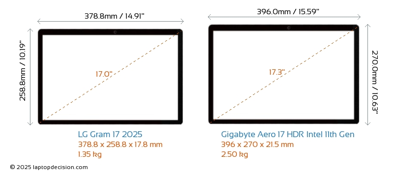 ThunderboltBoth Gram 17 2025 and Aero 17 HDR Intel 11th Gen are equipped with Thunderbolt 4 ports.
