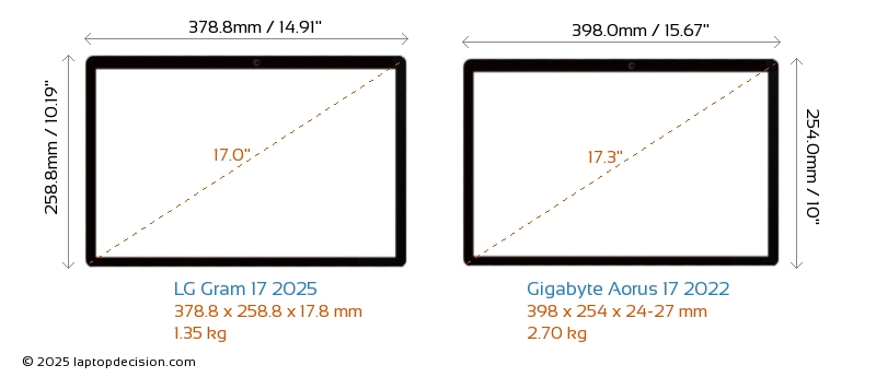 HDMIBoth Gram 17 2025 and Aorus 17 2022 feature an HDMI port (1x HDMI 2.1) for connecting to external monitors.