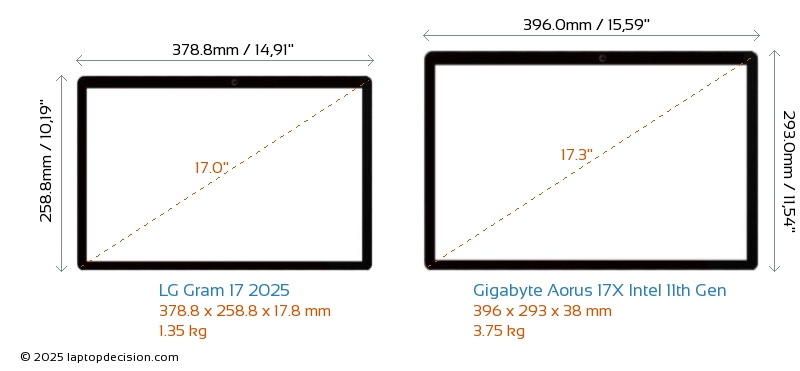 ThunderboltBoth Gram 17 2025 and Aorus 17X Intel 11th Gen are equipped with Thunderbolt 4 ports.