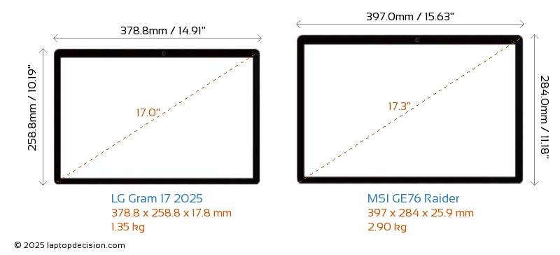 ThunderboltBoth Gram 17 2025 and GE76 Raider are equipped with Thunderbolt 4 ports.