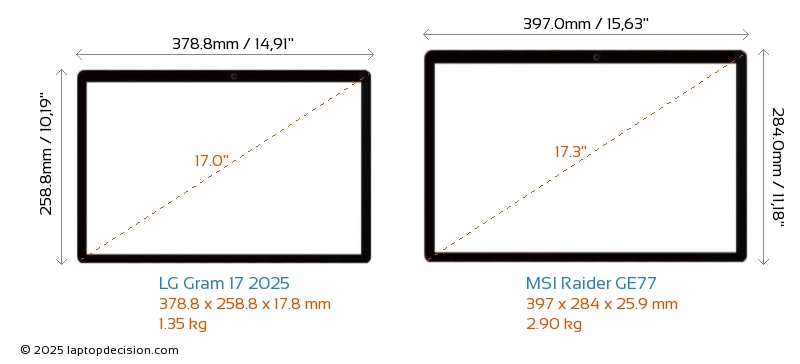 HDMIBoth Gram 17 2025 and Raider GE77 feature an HDMI port (1x HDMI 2.1) for connecting to external monitors.
