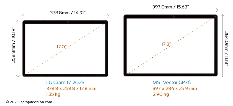 HDMIBoth Gram 17 2025 and Vector GP76 feature an HDMI port (1x HDMI 2.1) for connecting to external monitors.