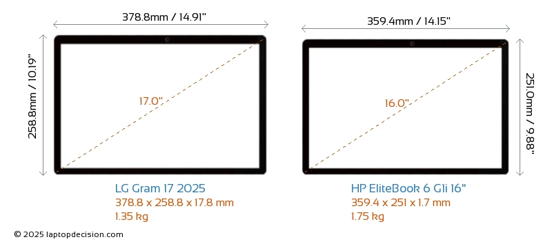 Wifi Both Gram 17 2025 and EliteBook 6 G1i 16" support the latest Wi-Fi standard v7.