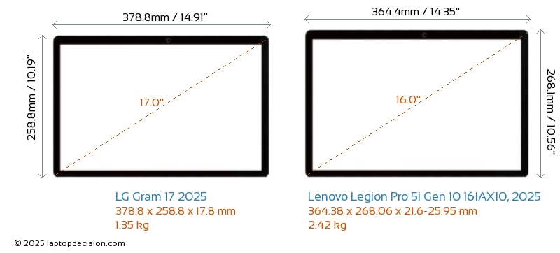 ThunderboltBoth Gram 17 2025 and Legion Pro 5i Gen 10 16IAX10, 2025 are equipped with Thunderbolt 4 ports.