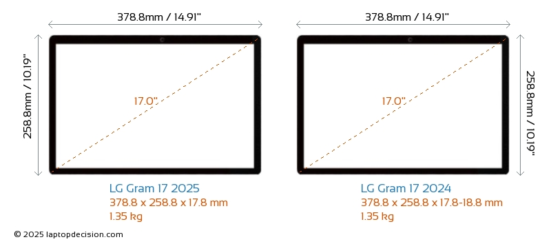 Wifi Gram 17 2025 features a more advanced Wi-Fi standard v7, providing faster and more reliable wireless connections compared to Gram 17 2024 (v6E).