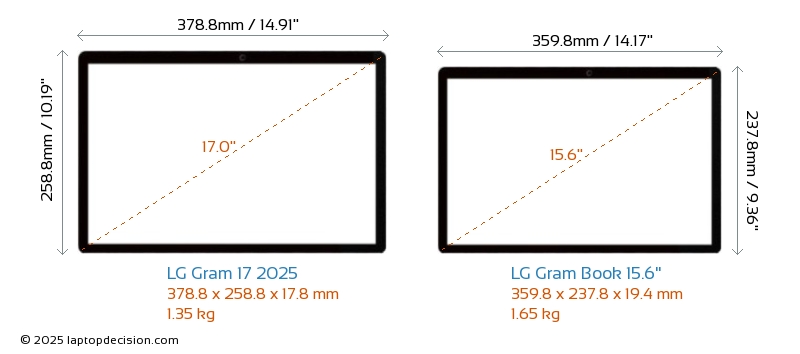 Wifi Gram 17 2025 features a more advanced Wi-Fi standard v7, providing faster and more reliable wireless connections compared to Gram Book 15.6" (v6).