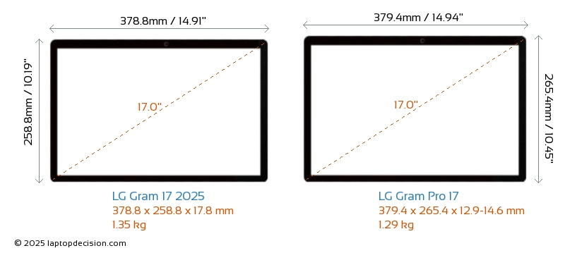 Wifi Gram 17 2025 features a more advanced Wi-Fi standard v7, providing faster and more reliable wireless connections compared to Gram Pro 17 (v6E).