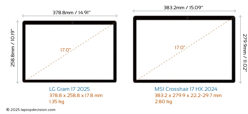 HDMIBoth Gram 17 2025 and Crosshair 17 HX 2024 feature an HDMI port (1x HDMI 2.1) for connecting to external monitors.