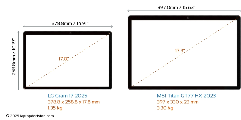 HDMIBoth Gram 17 2025 and Titan GT77 HX 2023 feature an HDMI port (1x HDMI 2.1) for connecting to external monitors.