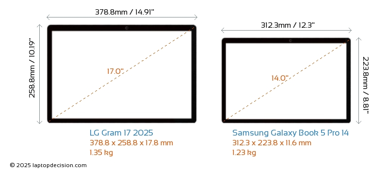 HDMIBoth Gram 17 2025 and Galaxy Book 5 Pro 14 feature an HDMI port (1x HDMI 2.1) for connecting to external monitors.