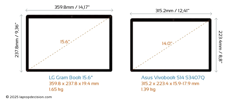 Thunderbolt Gram Book 15.6" is equipped with Thunderbolt 4 port. Vivobook S14 S3407Q does not have Thunderbolt port.