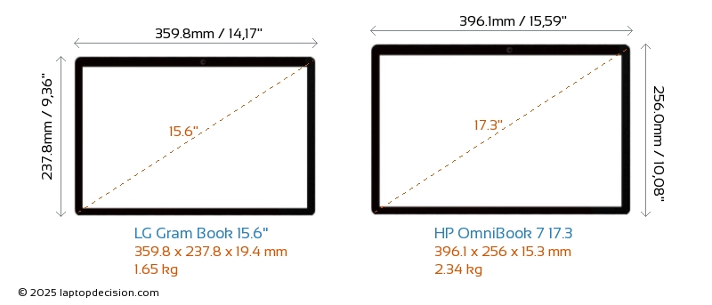 HDMIBoth Gram Book 15.6" and OmniBook 7 17.3 feature an HDMI port. Gram Book 15.6" offers 1x HDMI 1.4, while OmniBook 7 17.3 offers 1x HDMI 2.1.