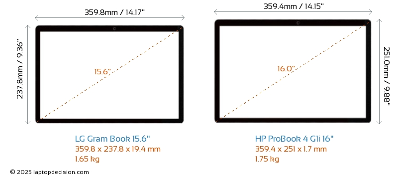 SD Card Reader Gram Book 15.6" is equipped with an SD Card Reader for easy access to memory cards. ProBook 4 G1i 16" does not have an SD Card Reader.