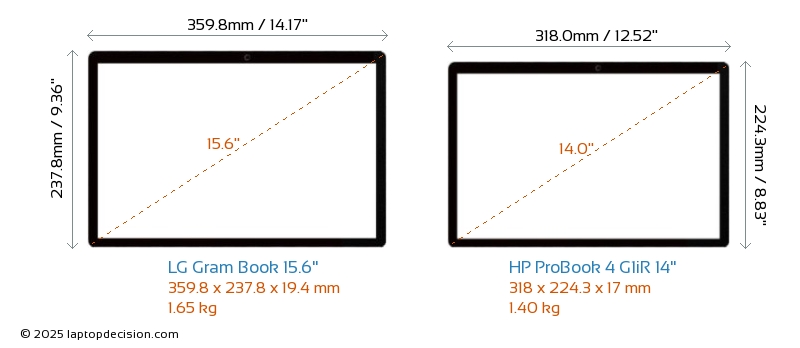 SD Card Reader Gram Book 15.6" is equipped with an SD Card Reader for easy access to memory cards. ProBook 4 G1iR 14" does not have an SD Card Reader.