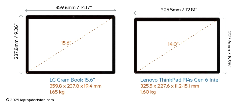 ThunderboltBoth Gram Book 15.6" and ThinkPad P14s Gen 6 Intel are equipped with Thunderbolt 4 ports.