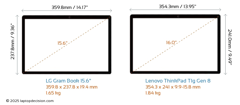 ThunderboltBoth Gram Book 15.6" and ThinkPad T1g Gen 8 feature Thunderbolt ports. Gram Book 15.6" has Thunderbolt 4, while ThinkPad T1g Gen 8 has Thunderbolt 5.