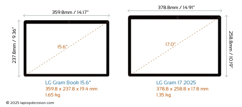 Wifi Gram 17 2025 features a more advanced Wi-Fi standard v7, providing faster and more reliable wireless connections compared to Gram Book 15.6" (v6).