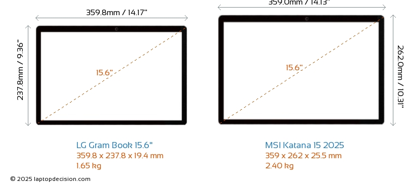 SD Card Reader Gram Book 15.6" is equipped with an SD Card Reader for easy access to memory cards. Katana 15 2025 does not have an SD Card Reader.