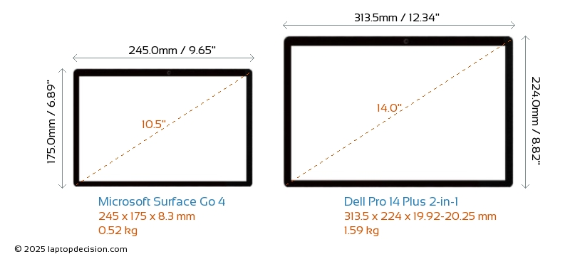 USB Pro 14 Plus 2-in-1 is equipped with 2x USB 3.2 USB-A ports. Surface Go 4 does not have USB-A ports.Both Surface Go 4 and Pro 14 Plus 2-in-1 have USB Type-C ports. Surface Go 4 has 1x USB 3.1 USB Type-C ports, while Pro 14 Plus 2-in-1 has 2x USB 4.0 USB Type-C ports.