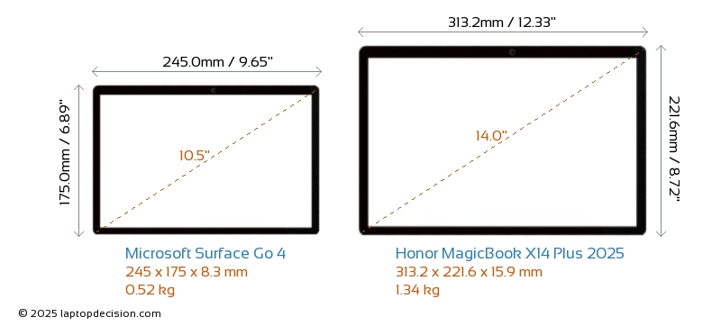 USB MagicBook X14 Plus 2025 is equipped with 2x USB 3.2 USB-A ports. Surface Go 4 does not have USB-A ports.Both Surface Go 4 and MagicBook X14 Plus 2025 have USB Type-C ports. Surface Go 4 has 1x USB 3.1 USB Type-C ports, while MagicBook X14 Plus 2025 has 2x USB 4.0 USB Type-C ports.
