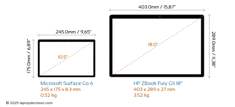 HDMI ZBook Fury G1i 18" features an HDMI port (1x HDMI 2.1) for connecting to external monitors. Surface Go 4 does not have an HDMI port.