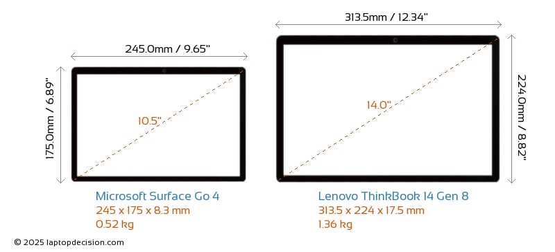 Audio JackBoth Surface Go 4 and ThinkBook 14 Gen 8 are equipped with a 3.5mm Audio Jack, providing seamless connection to headphones and speakers.