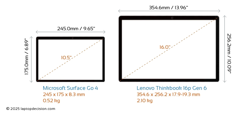 HDMI Thinkbook 16p Gen 6 features an HDMI port (1x HDMI 2.1) for connecting to external monitors. Surface Go 4 does not have an HDMI port.
