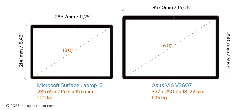 Audio JackBoth Surface Laptop 13 and V16 V3607 are equipped with a 3.5mm Audio Jack, providing seamless connection to headphones and speakers.