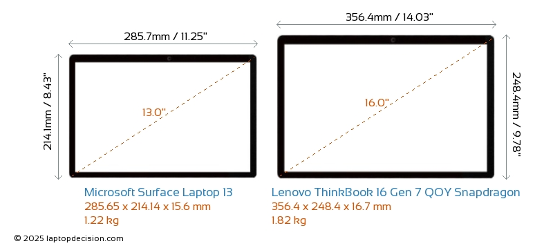 Audio JackBoth Surface Laptop 13 and ThinkBook 16 Gen 7 QOY Snapdragon are equipped with a 3.5mm Audio Jack, providing seamless connection to headphones and speakers.
