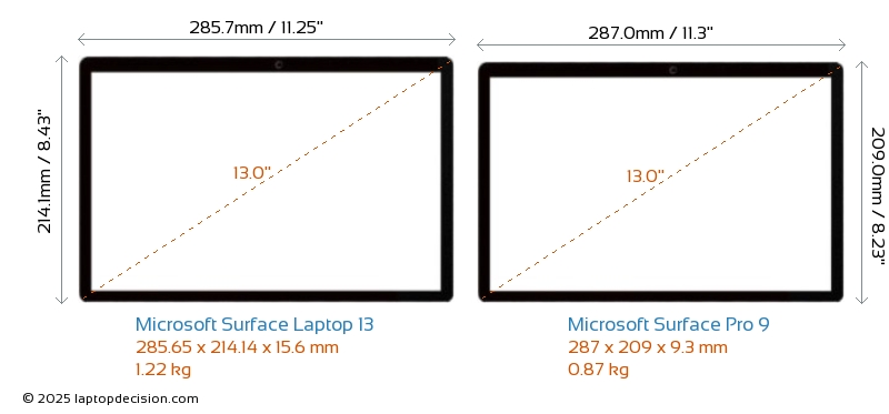 Audio Jack Surface Laptop 13 is equipped with a 3.5mm Audio Jack, allowing seamless connection to headphones and speakers. Surface Pro 9 does not have a 3.5mm Audio Jack.