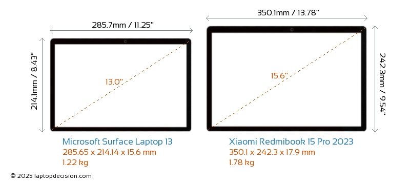Audio JackBoth Surface Laptop 13 and Redmibook 15 Pro 2023 are equipped with a 3.5mm Audio Jack, providing seamless connection to headphones and speakers.