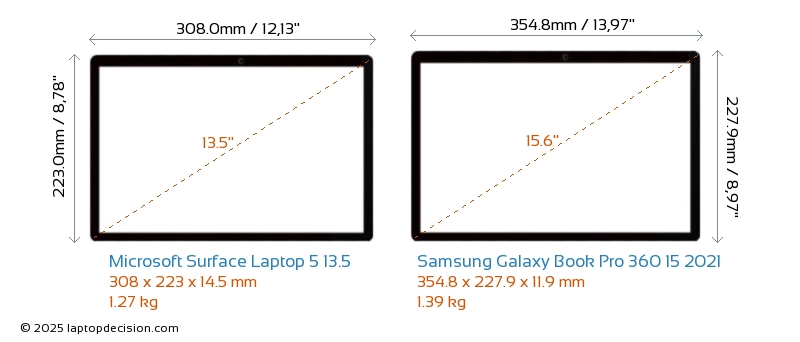 ThunderboltBoth Surface Laptop 5 13.5 and Galaxy Book Pro 360 15 2021 are equipped with Thunderbolt 4 ports.