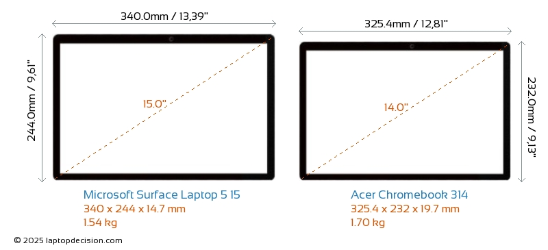 Audio JackBoth Surface Laptop 5 15 and Chromebook 314 are equipped with a 3.5mm Audio Jack, providing seamless connection to headphones and speakers.