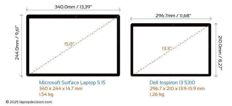 Audio JackBoth Surface Laptop 5 15 and Inspiron 13 5310 are equipped with a 3.5mm Audio Jack, providing seamless connection to headphones and speakers.