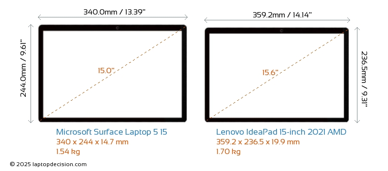 Audio JackBoth Surface Laptop 5 15 and IdeaPad 15-inch 2021 AMD are equipped with a 3.5mm Audio Jack, providing seamless connection to headphones and speakers.