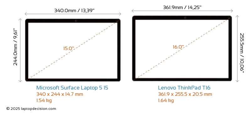 ThunderboltBoth Surface Laptop 5 15 and ThinkPad T16 are equipped with Thunderbolt 4 ports.