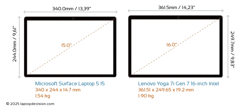 USBBoth Surface Laptop 5 15 and Yoga 7i Gen 7 16-inch Intel have USB-A ports. Surface Laptop 5 15 has 1x USB 3.1 USB-A ports, while Yoga 7i Gen 7 16-inch Intel has 2x USB 3.2 USB-A ports.Both Surface Laptop 5 15 and Yoga 7i Gen 7 16-inch Intel have USB Type-C ports. Surface Laptop 5 15 has 1x USB 4.0 USB Type-C ports, while Yoga 7i Gen 7 16-inch Intel has 2x USB 4.0 USB Type-C ports.