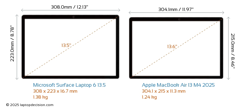 Audio JackBoth Surface Laptop 6 13.5 and MacBook Air 13 M4 2025 are equipped with a 3.5mm Audio Jack, providing seamless connection to headphones and speakers.