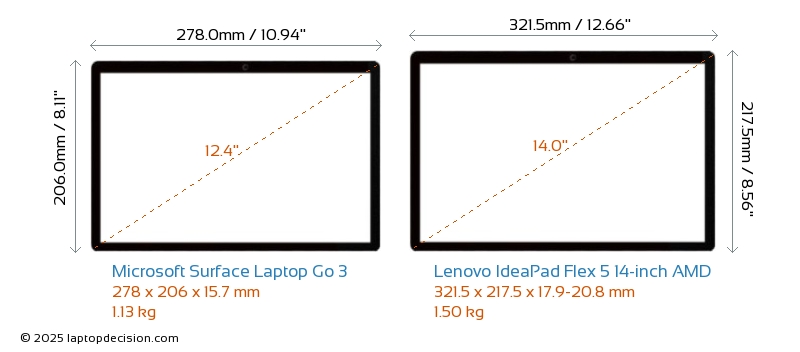 Audio JackBoth Surface Laptop Go 3 and IdeaPad Flex 5 14-inch AMD are equipped with a 3.5mm Audio Jack, providing seamless connection to headphones and speakers.